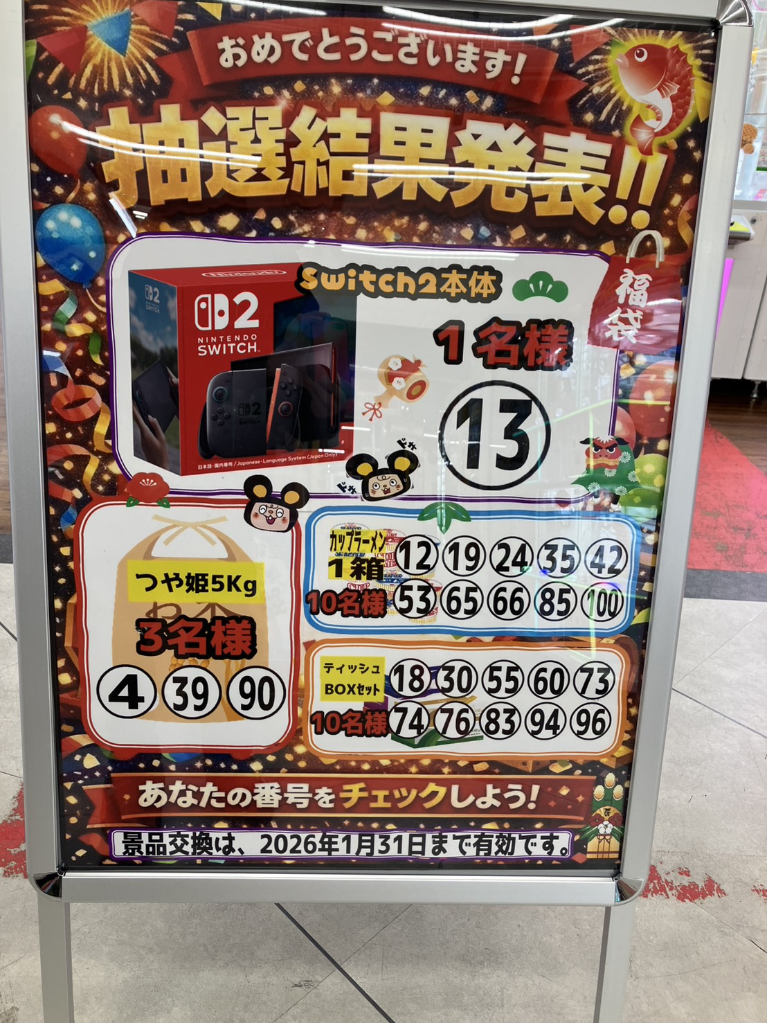 お宝中古市場鶴岡店当たりつき福袋の景品交換は本日が最終日となっております!