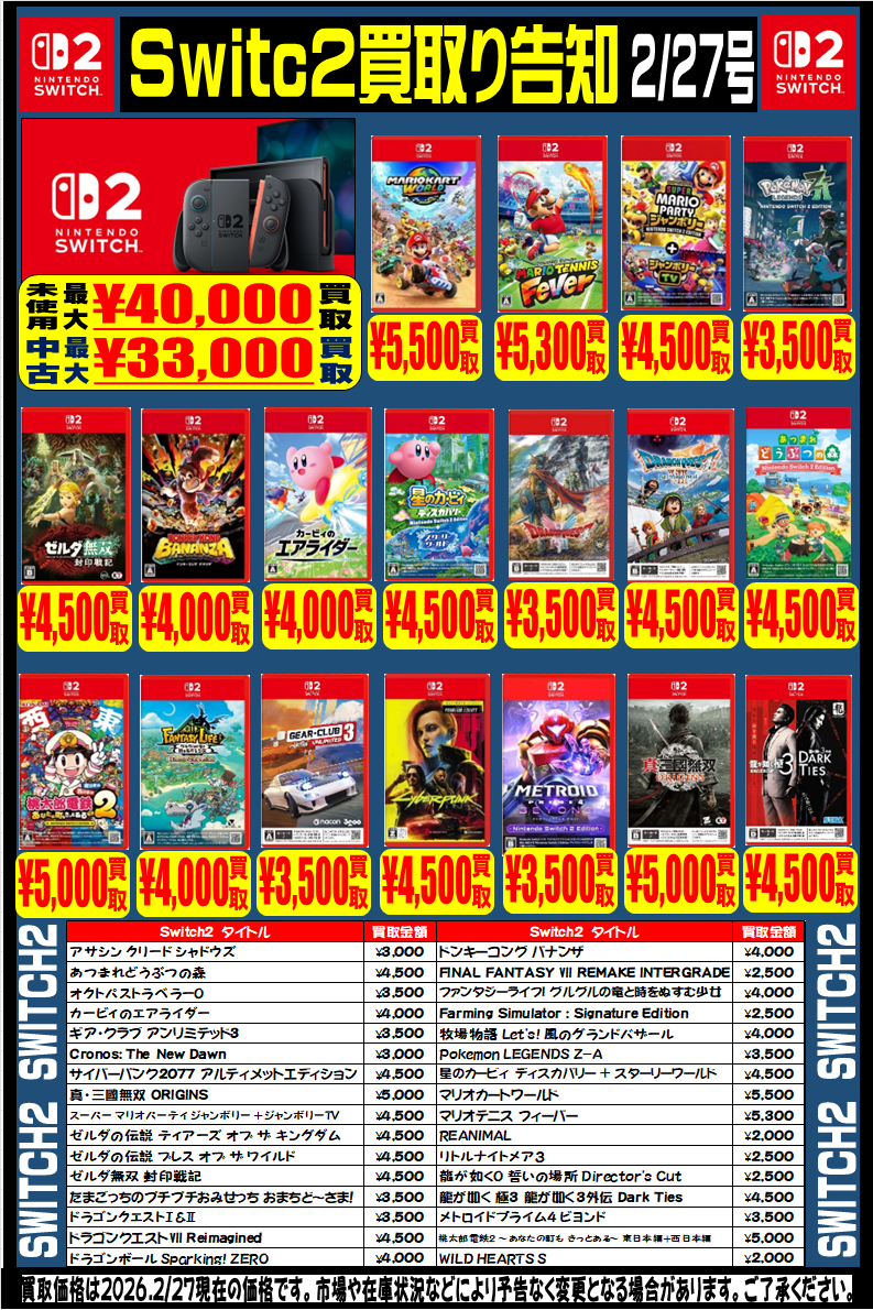 【Switch2】【Switch】【PS5】強化買取中です。