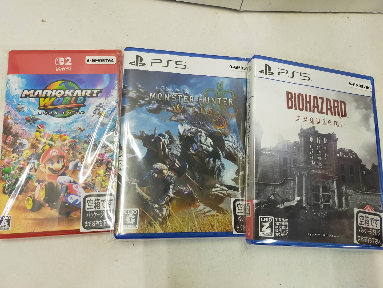 ゲーム入荷情報です! 2026年4月8日 ゲームコーナーから入荷情報のお知らせ😃 PS5ソフト&Switch2ソフトが入荷しております♪ 新たな恐怖を体感せよ バイオハザード・レクイエム 驚天動地の狩りがくる モンスターハンターワイルズ 垣根を越えたワールドワイドレース開幕! マリオカートワールド どれも超A級人気タイトルでございます🤓 あとはこれまた珍しい! XBOX360の状態良好品が入荷しました☆ 一式揃ってて、動作確認済みです😄 ショーケースに入ってるので興味のある方はぜひ! ではでは(^^)/