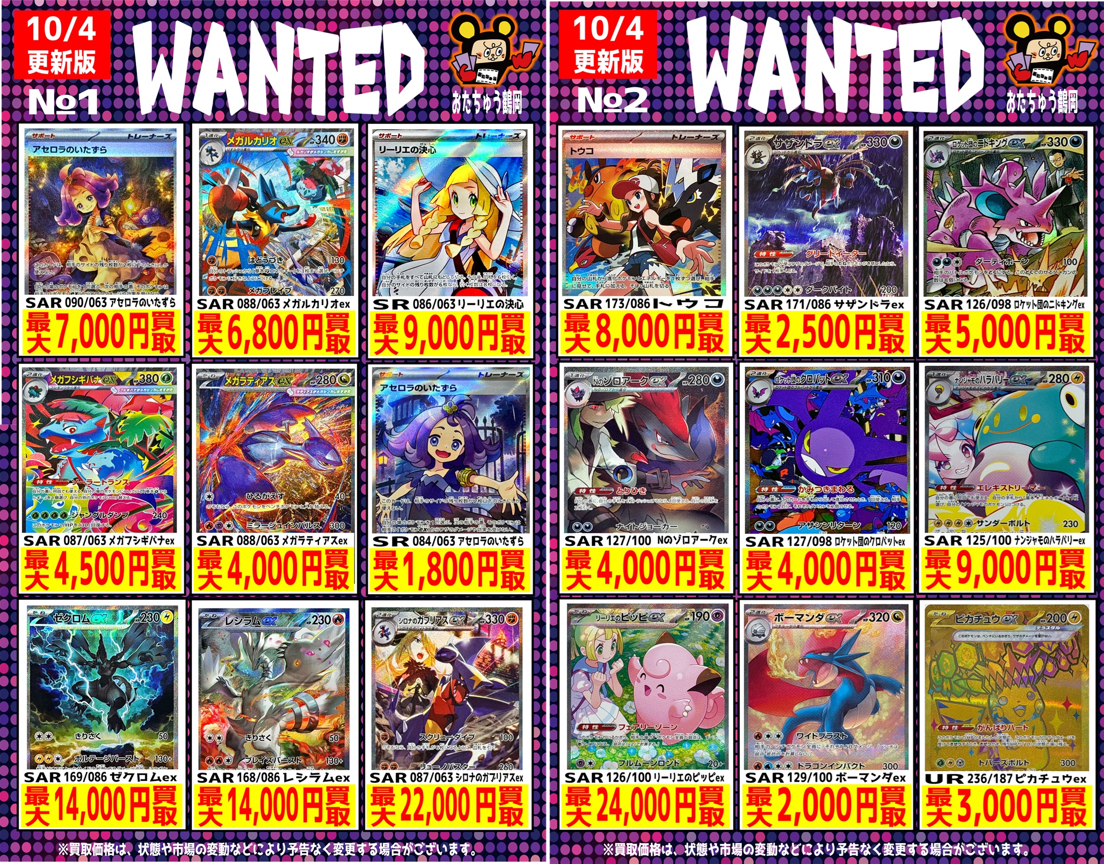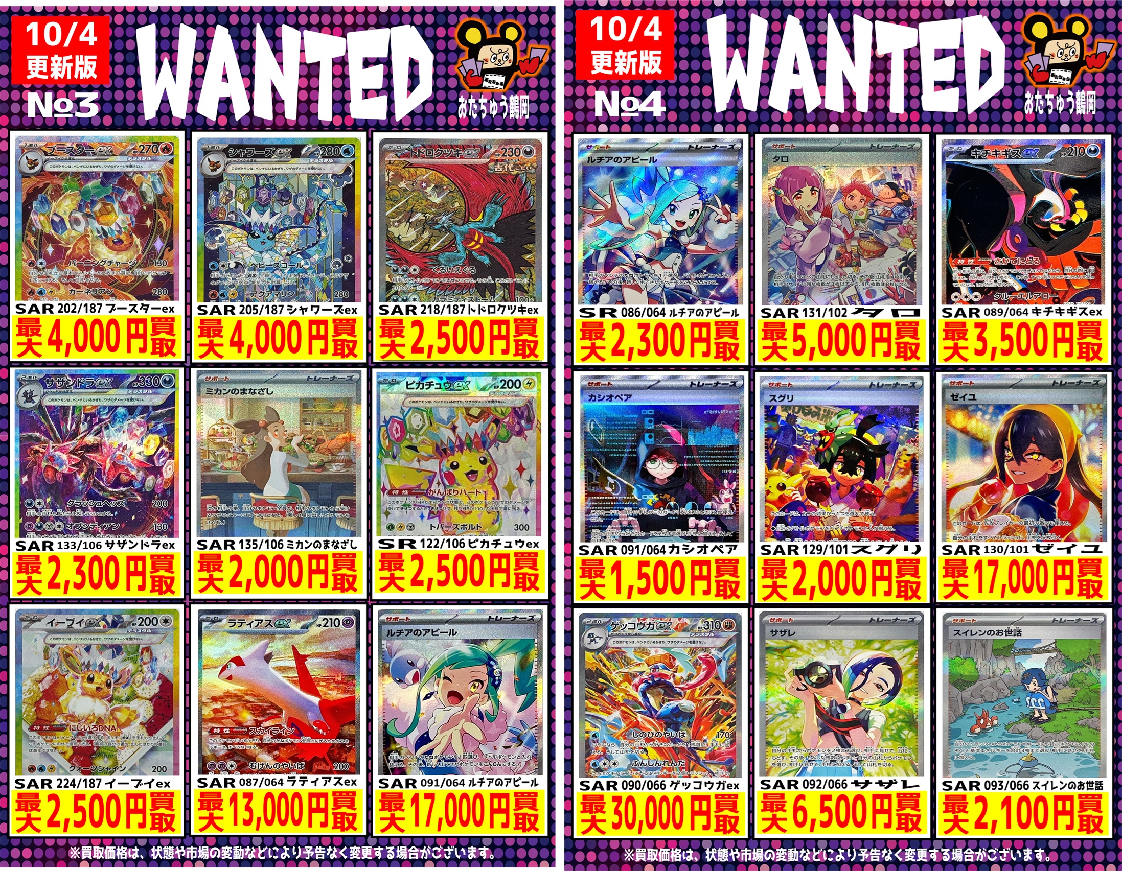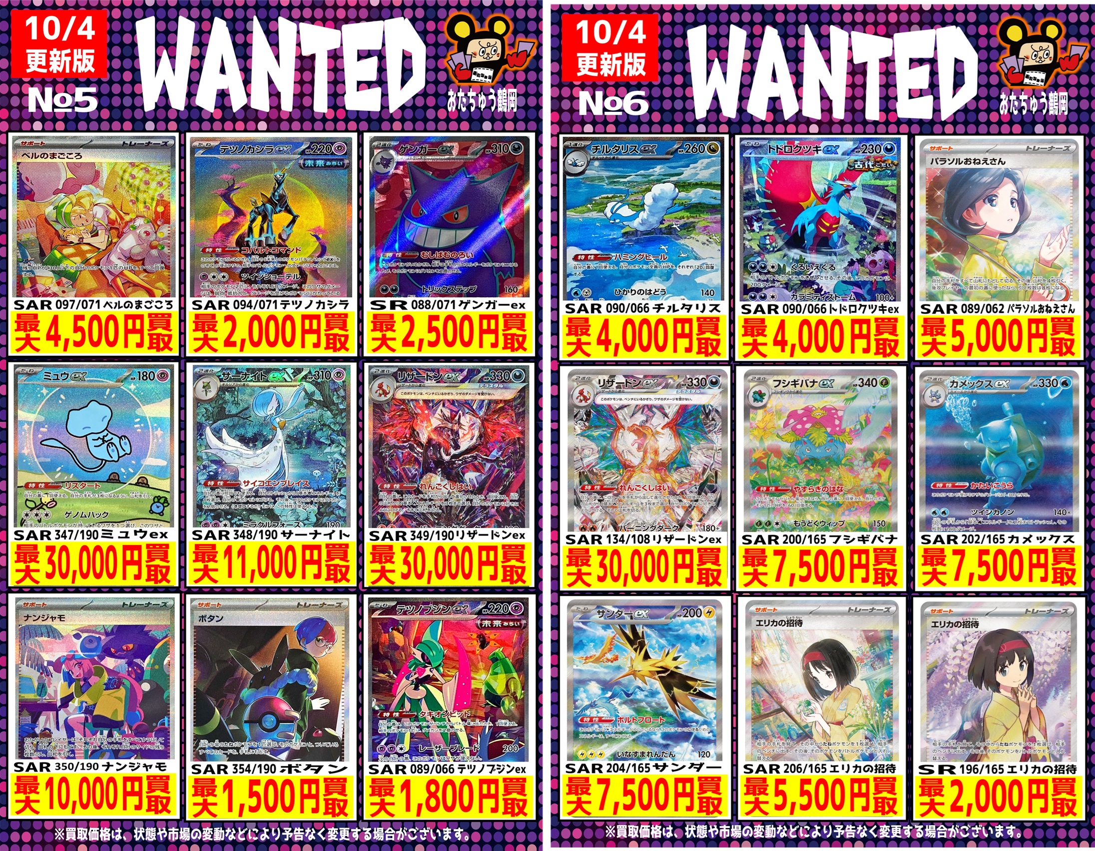 今週のポケモンカード買取情報更新しました。 ※2025/9/26現在の価格となっております。 相場、在庫状況に...