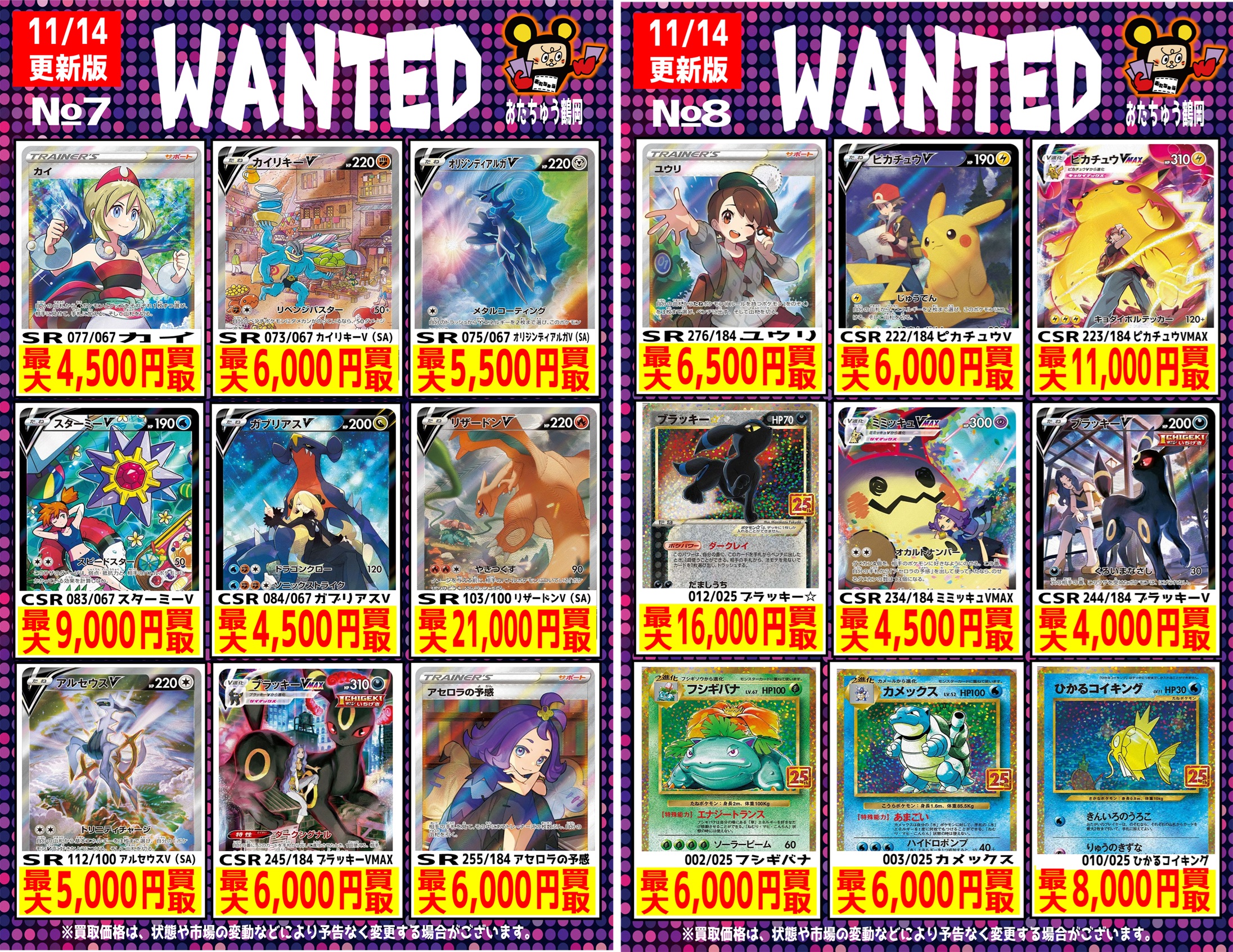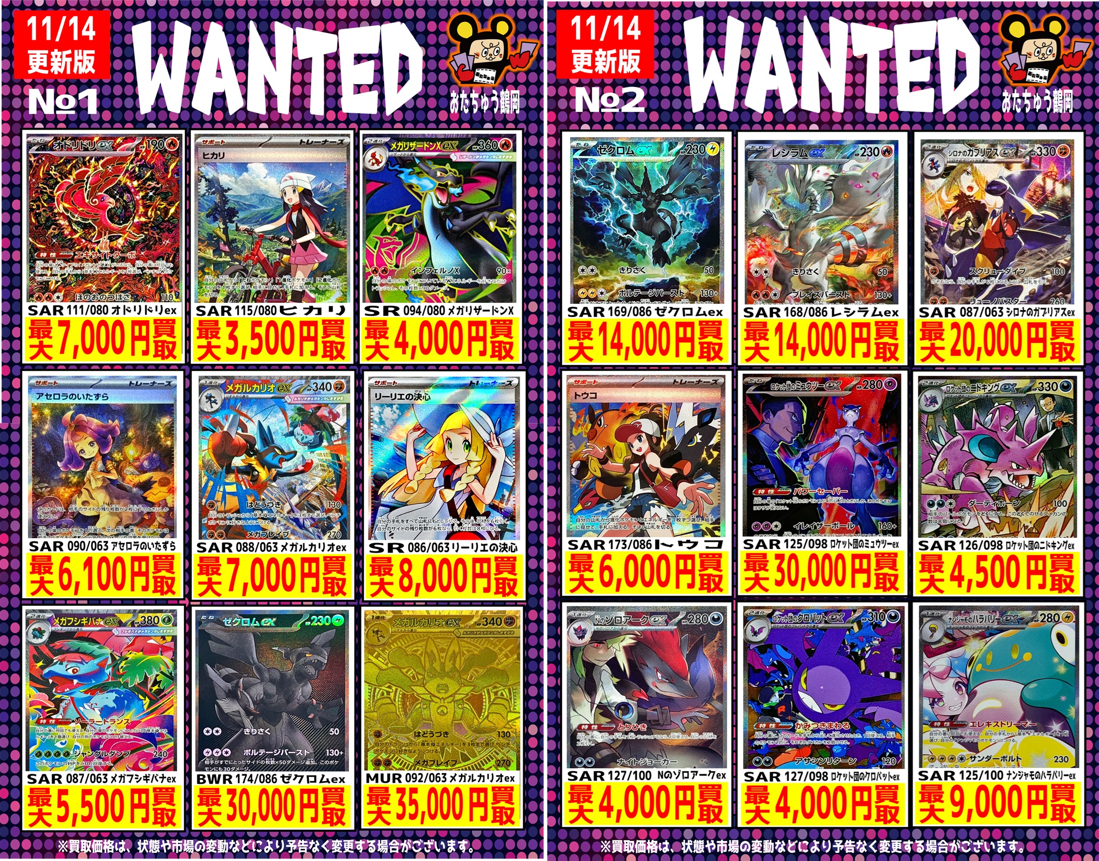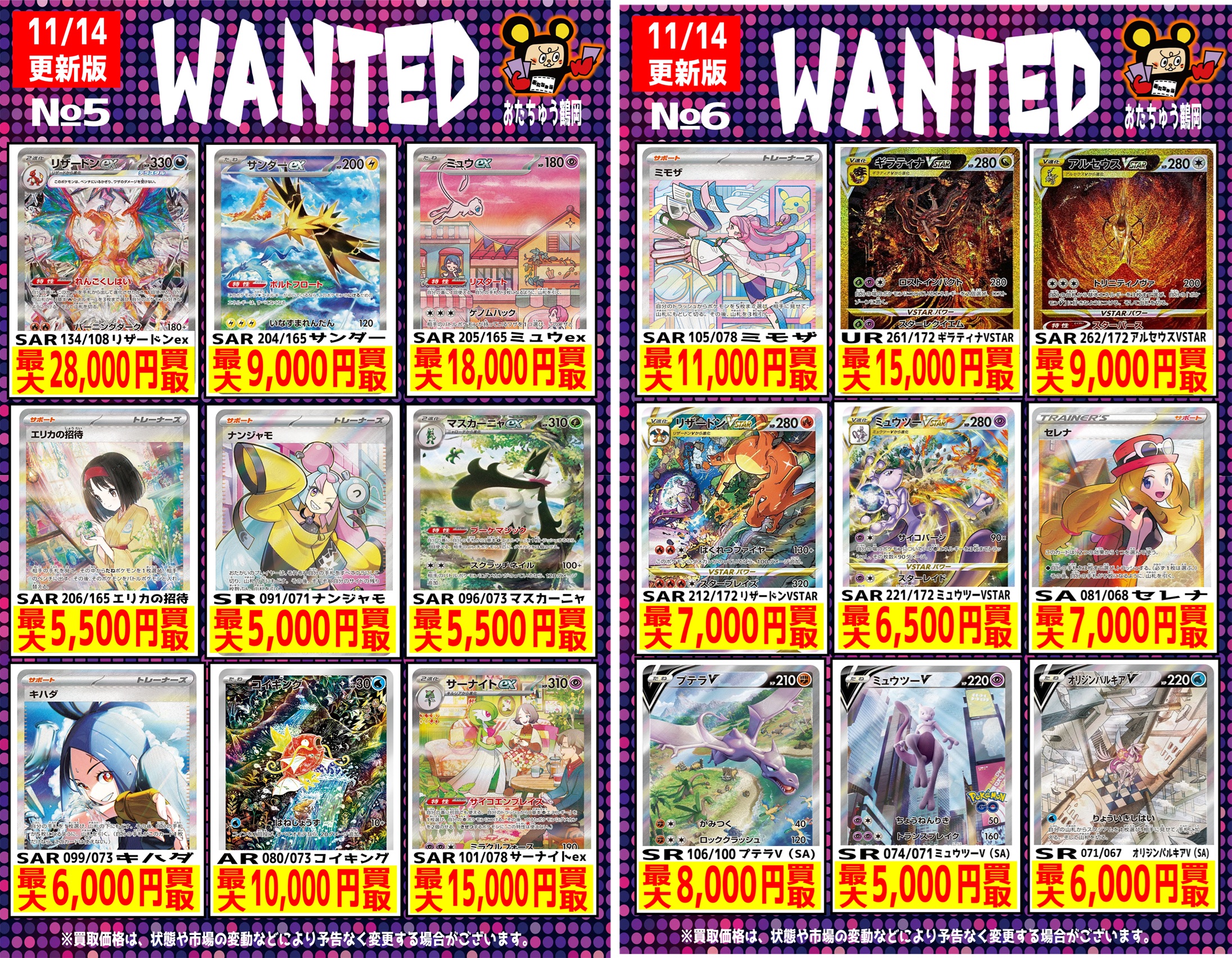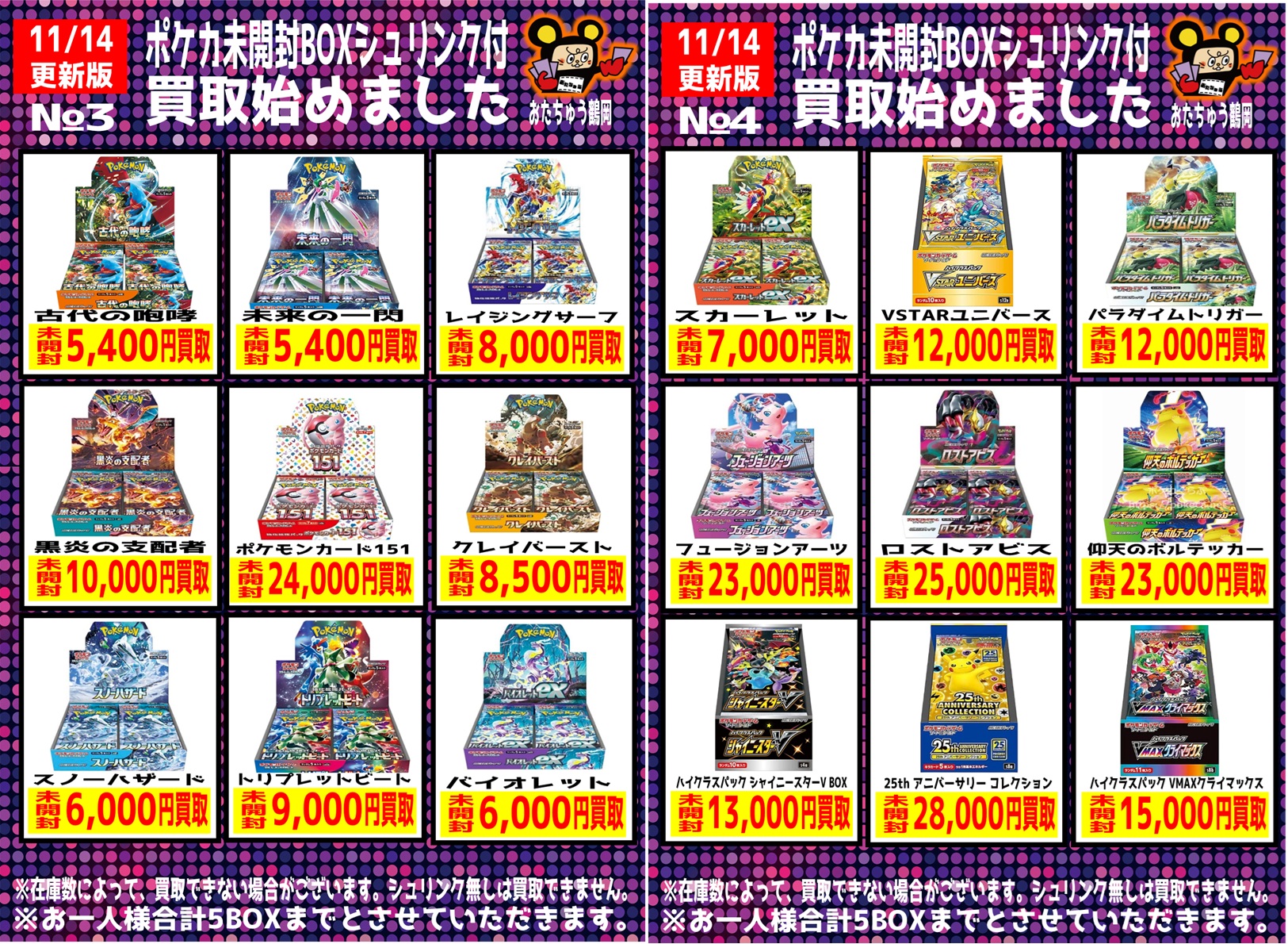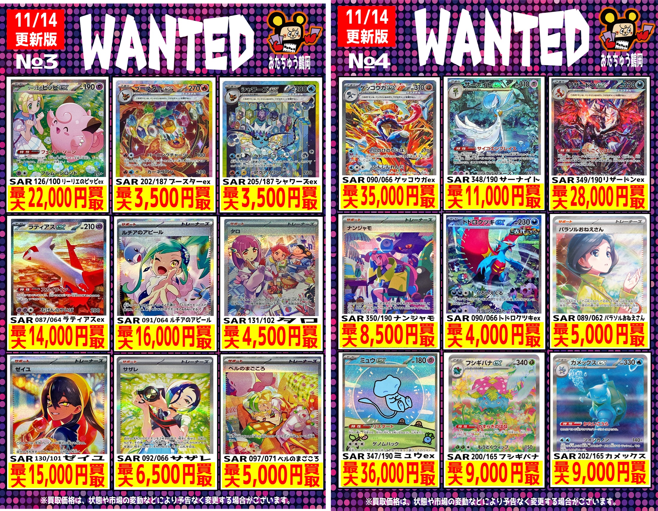 ★ポケモンカード買取告知★ 2025年11月14日 に投稿された★買取情報★ ※2025/11/14現在の価格となっております。 相場、在庫状況により告知なく価格が変更となる...