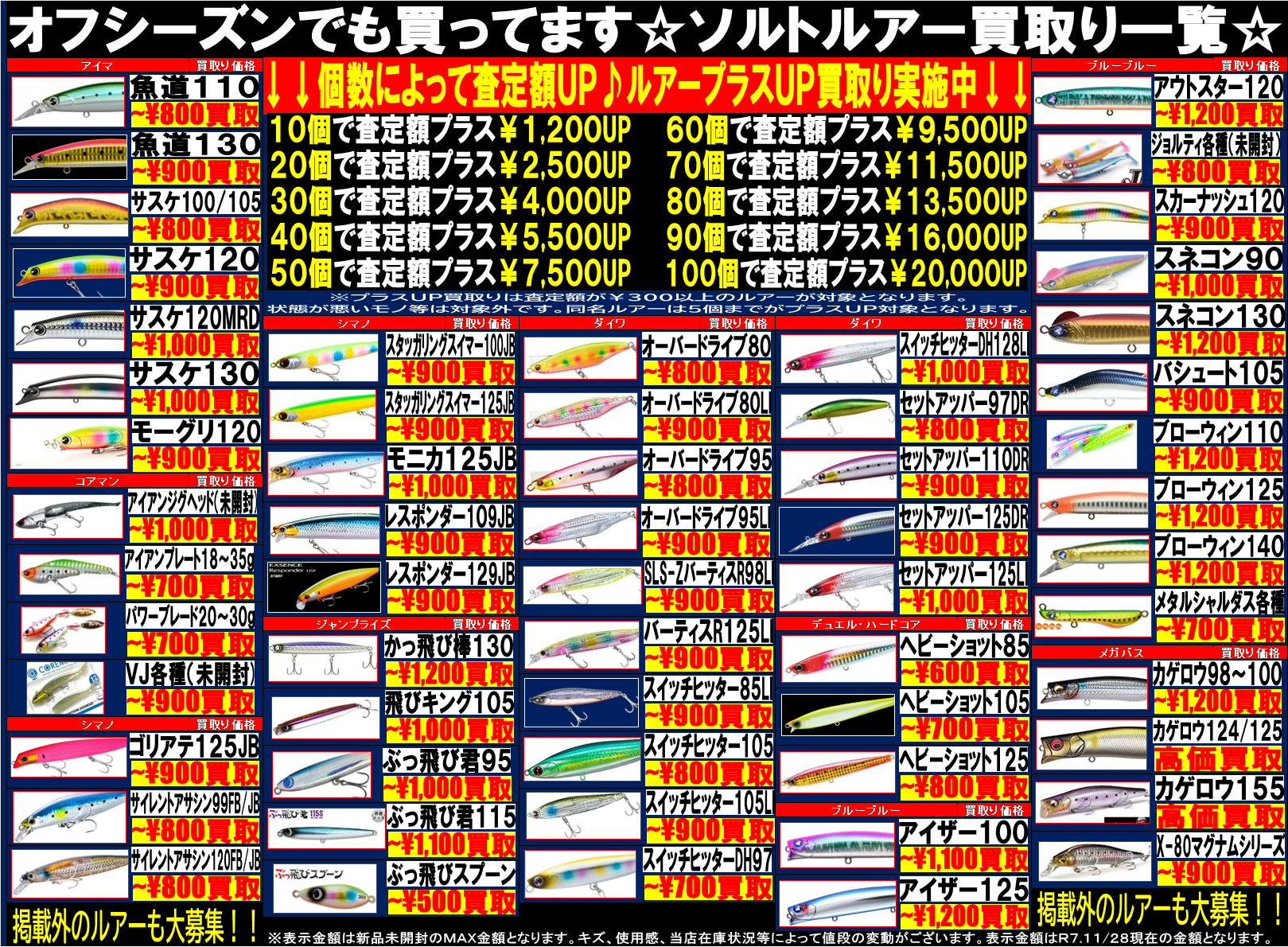 掲載外のルアーも募集中!