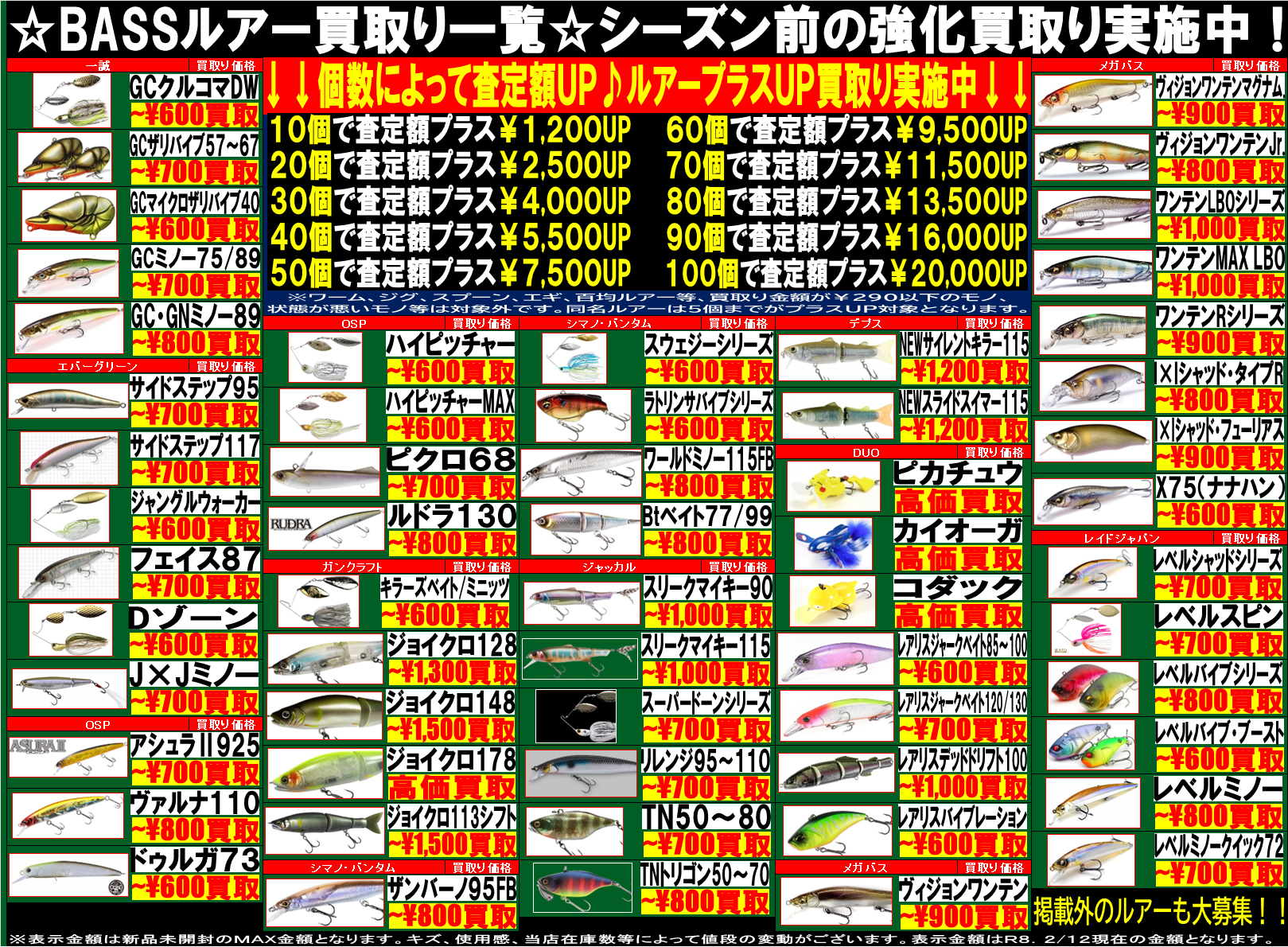 シーズンに先駆けて、BASSルアーの買取りも