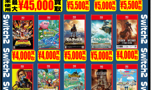 買取情報【Switch2】【Switch】【PS5】強化買取中です。 是非この機会に査定にお持ちください。ご来店お待ちしております。 ※2025/10/23現在の価格となっております。 相場、在庫状況により告知なく価格が変更とな…