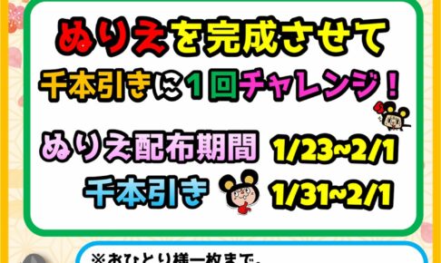 ★《配布:1月23日~2月1日》ぬりえイベント開催《千本引き:1月31日~2月1日》★