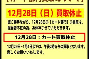 ■お宝中古市場鶴岡店はリニューアルオープンに向け店内一部改装中です!■ 2022年4月28日 ★お知らせ★ お宝中古市場鶴岡店はリニューアルオープンに向け店内一部改装中です! 新しいお店に変わるのを楽しみにお待ちくださいね♪ そこで、店内のお得な大セールを実施中^_^ 各部門でセールをしてますので是非明日からのGWスタートは鶴岡店からスタートして下さいねー! お待ちしております^_^ ※2022/4/28現在の販売・買取価格となります。 在庫状況などによってお値段が変動いたします。予めご了承ください。
