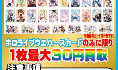 おもちゃコーナーより買取情報 ホロライブウエハースカード強化買取中^^ 1枚最大30円買取になりますヨ~~~~ 持込上限は特にないので是非たくさんお持ちください^^ ※ウエハース本体はご自身で処理してください。 おもちゃ…